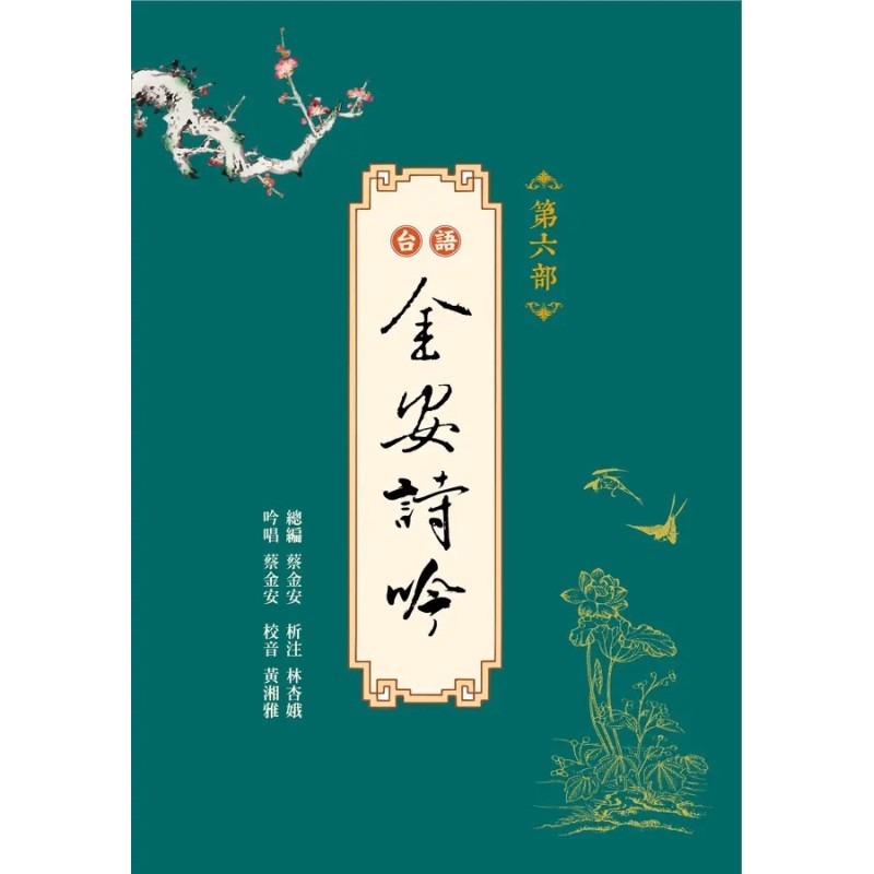 本書為《台語金安詩吟》系列書籍中的第六部。本套系列10本書收集自《詩經》開始至民初時期我國歷代的詩賦詞曲的名作共2222 首,依題材內容分為100類,每一類為一輯,共有 100 輯。每 10 輯合為一部,總共 10 部。書中提供各作品的原文、曲調、賞析、註釋。賞析與註釋讓讀者能快速掌握作品的重點,並從中明白作者所要傳達的意念或情緒。曲調數即標示我們運用幾種不同的曲調來吟唱該作品,各作品曲調數不一,請參考各作品的說明。此外,每個作品逐一附有QRCode,讀者可隨時掃描,隨時在線上收聽該作品的各種曲調與唱法。本書在最後附上「作者簡介」和「曲調簡介」。在「作者簡介」中,依時代順序介紹作者,並予以簡明扼要的介紹。在「曲調簡介」中,簡略說明曲調來源以及曲調風格。本書藉由台語來吟唱古詩,期待讓各位讀者更能品味出詩詞的聲韻之美。