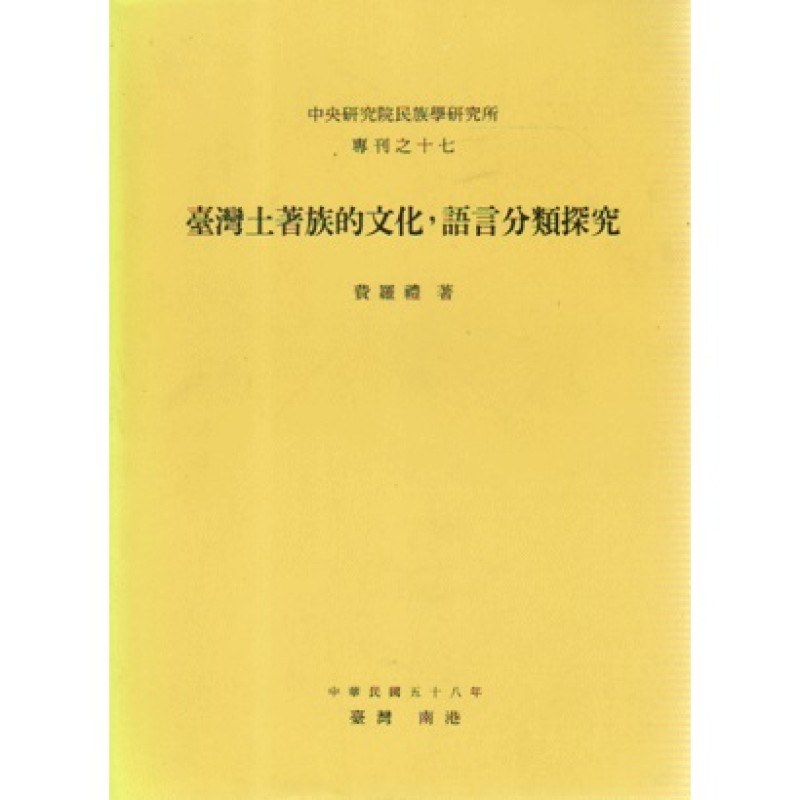 民族所專刊 17:臺灣土著族的文化、語言分類探究:魯凱排灣卑南三族群的比較研究 (英文)